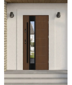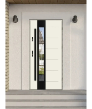stalen deurkozijn (houten-stalen deurkozijn 180e of aluminium deurkozijn met thermische onderbreking in optie 300e),