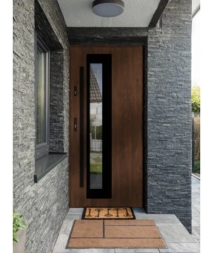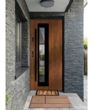 Uitbouw onder de deur - een klinkerbed dat onder de deur, in de dekvloer, wordt geplaatst. Stabiliseert en verstevigt de drempel en deurstructuur. Verbetert de thermische isolatie-eigenschappen van de deur in het dorpelgedeelte. Wordt geleverd met montagelijm. De basisdeurset bestaat uit: